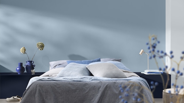 Pamatykite, kaip mėlynieji atspalviai atrodo ant jūsų sienų
